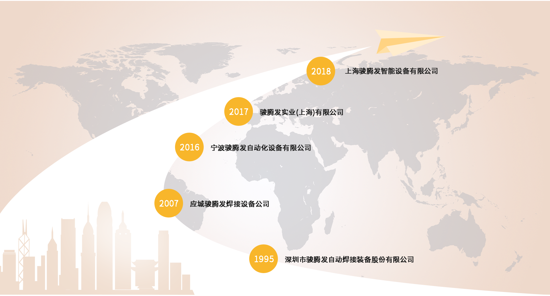駿騰發(fā)成立于1995年,是一家集科研、開發(fā)、制造、銷售于一體的電阻焊點焊機自動化焊接裝備高新技術(shù)企業(yè)。成立之初,駿騰發(fā)總部設(shè)在深圳龍崗,后遷往湖北應(yīng)城,2017年,為了適應(yīng)日益壯大的市場需求,考慮到公司的長遠發(fā)展,公司決定將總部遷往上海,并更名為駿騰發(fā)實業(yè)(上海)有限公司,截至2018年底,駿騰發(fā)實業(yè)(上海)有限公司下轄上海駿騰發(fā)智能設(shè)備有限公司、寧波駿騰發(fā)自動化設(shè)備有限公司、駿鐳(寧波)激光技術(shù)有限公司、托克弗(東莞)焊接技術(shù)有限公司等幾家控股公司,同時在深圳、南京、鄭州、沈陽等地均設(shè)有分公司。